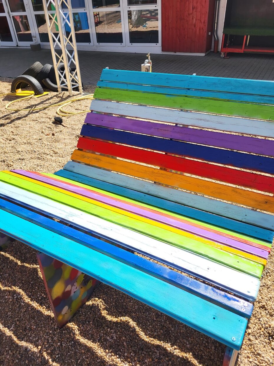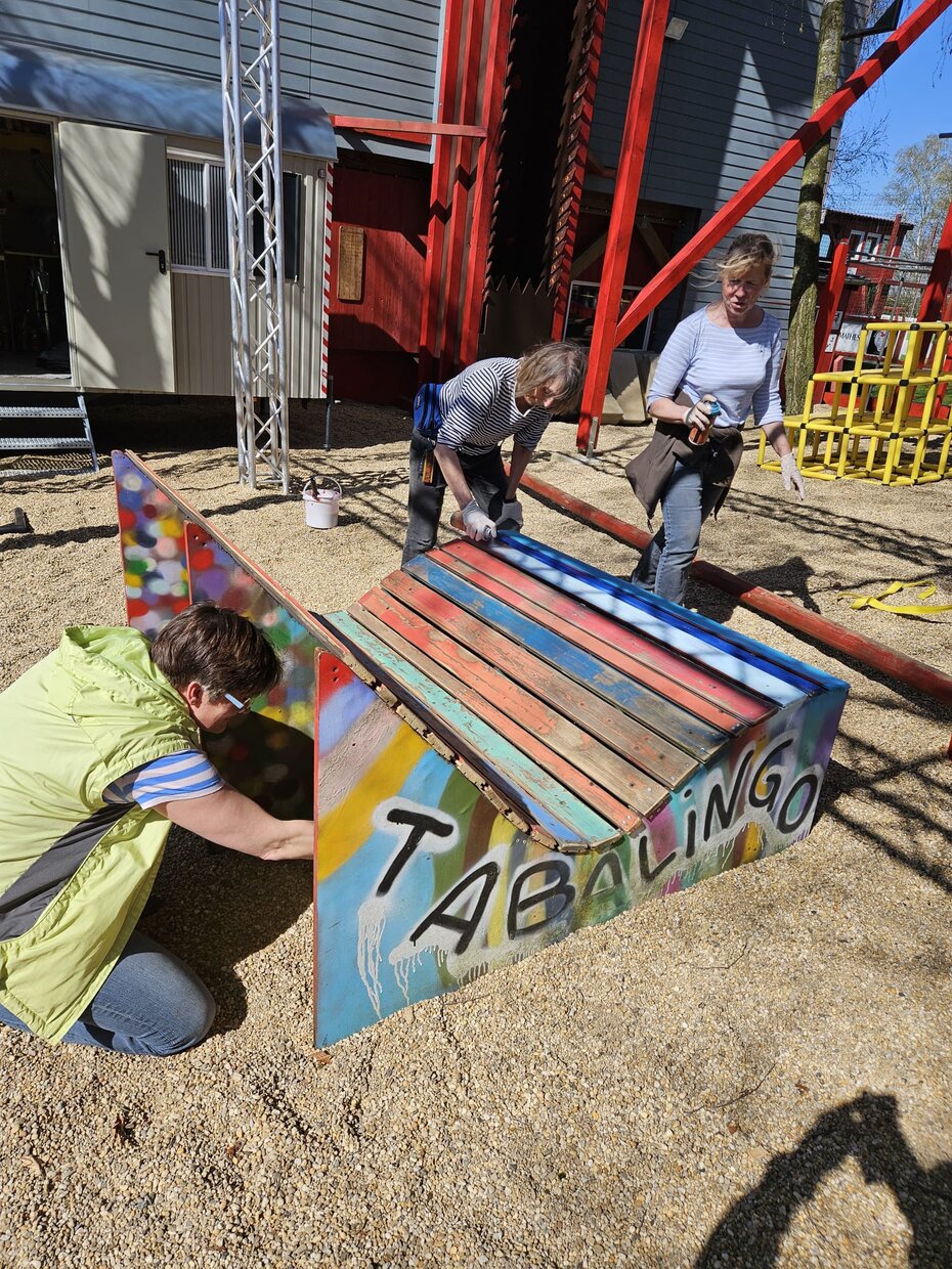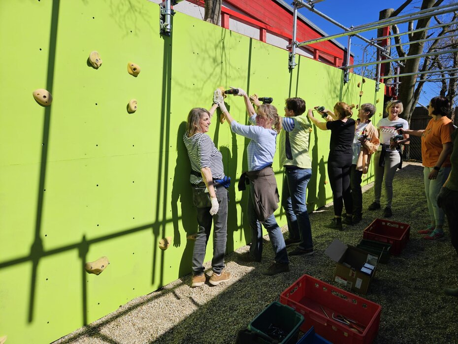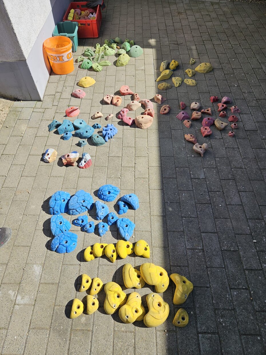 Die Spende wurde gezielt für die Erneuerung des Außen-Boulderbereiches von Tabalingo eingesetzt. Bei der Renovierung Anfang April packten wir Ladies tatkräftig mit an: außer Beton schippen und eine Regenbogen-Bank frisch streichen wurden jede Menge neuer Klettergriffe an die Boulderwand montiert.